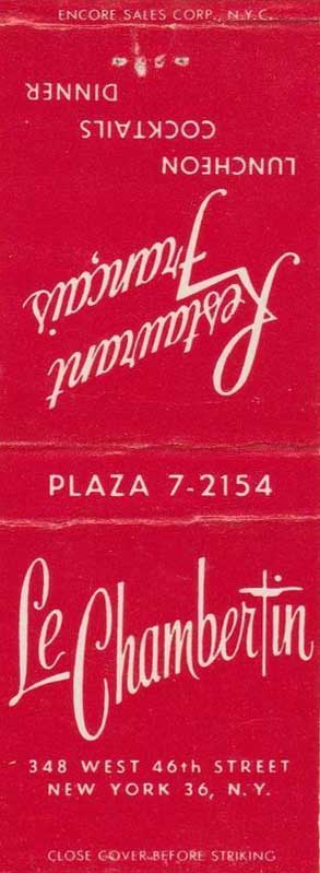 A wine lover’s paradise, Le Chambertin was a restaurant that the NYT said “might have been transplanted lock, stock and cuisine from France itself” and “one of the best known of the small, family owned French restaurants on the West Side”.